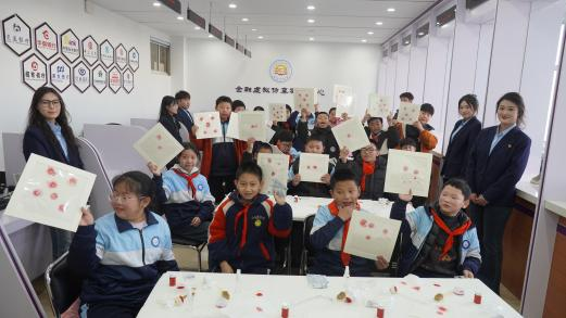 在非遗拓片制作环节,孩子们兴致盎然地动手实操制作非遗货币拓片,空白宣纸上逐渐显现出古钱币的清晰纹路与文字。孩子们既亲身体验了非遗技艺的精妙,更在亲手复刻中直观感知古代货币的形制美学与历史底蕴,实现文化感知与知识理解的双重提升。