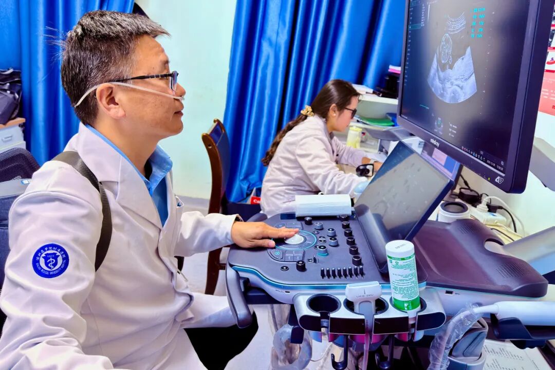 日喀则市妇幼保健院的超声检查工作量大,人员却紧张。杨智初到时,发现科室还有部分医生在孕产假和年假中,人手严重不足。面对科室的困境,他毫不退缩,迅速调整自己的状态,主动承担了大部分检查任务。他每天吸着氧气,努力克服呼吸困难,为患者完成一次又一次的超声检查。单日最高完成70多人次的检查量。“我从早忙到晚,时间根本不够用。”他笑着说,却毫无怨言。他深知,每一分努力都可能改变当地孕妇和患者的生活。为了解决患者交通不便和看病困难的问题,他推行了“即开单即检查”的模式,让远道而来的患者缩短了等待时间,提高了就医效率。