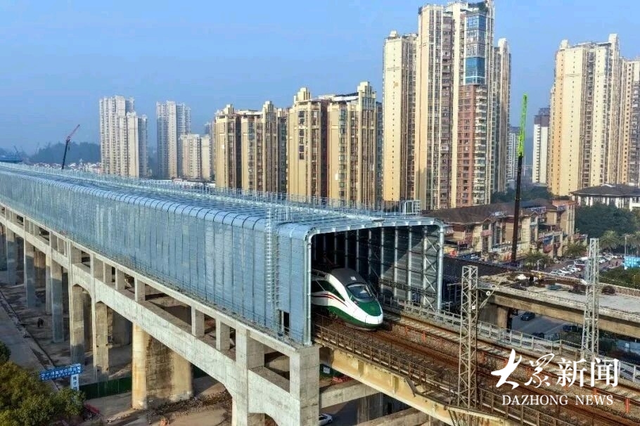 达成线全封闭声屏障项目位于运营中的达成铁路遂宁站东侧,处于在建的成达万正线与居民楼之间,全长967米,由门型刚架和金属吸声板组成,单跨跨度14米,总高9.3米,采用全包裹式设计。建成后将形成巨型“隔音隧道”,有效阻隔列车通行噪声,改善周边居民生活环境。