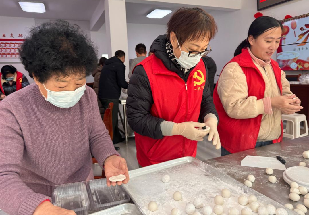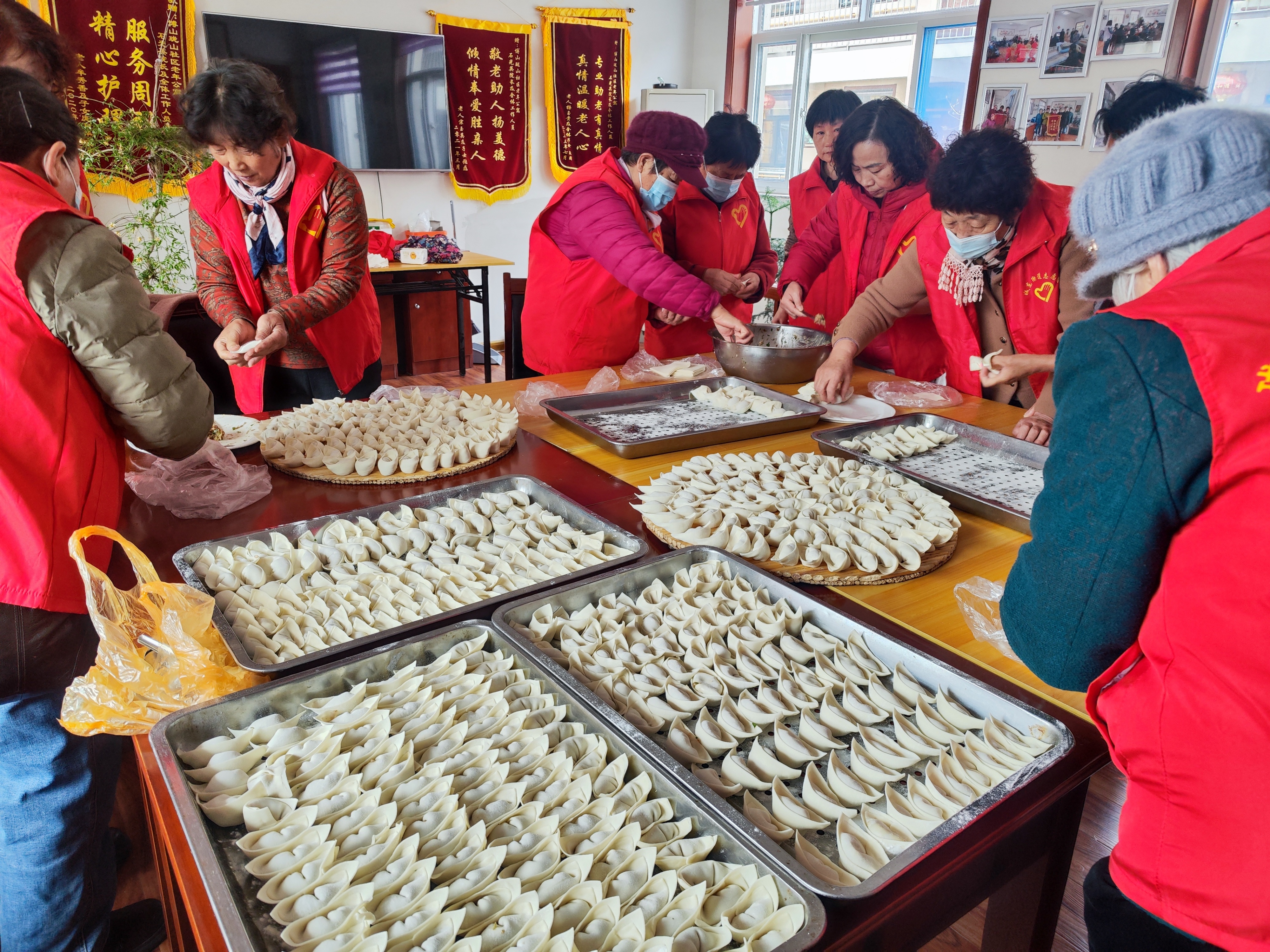 珑山社区组织居民在老年公寓为老人们包饺子。