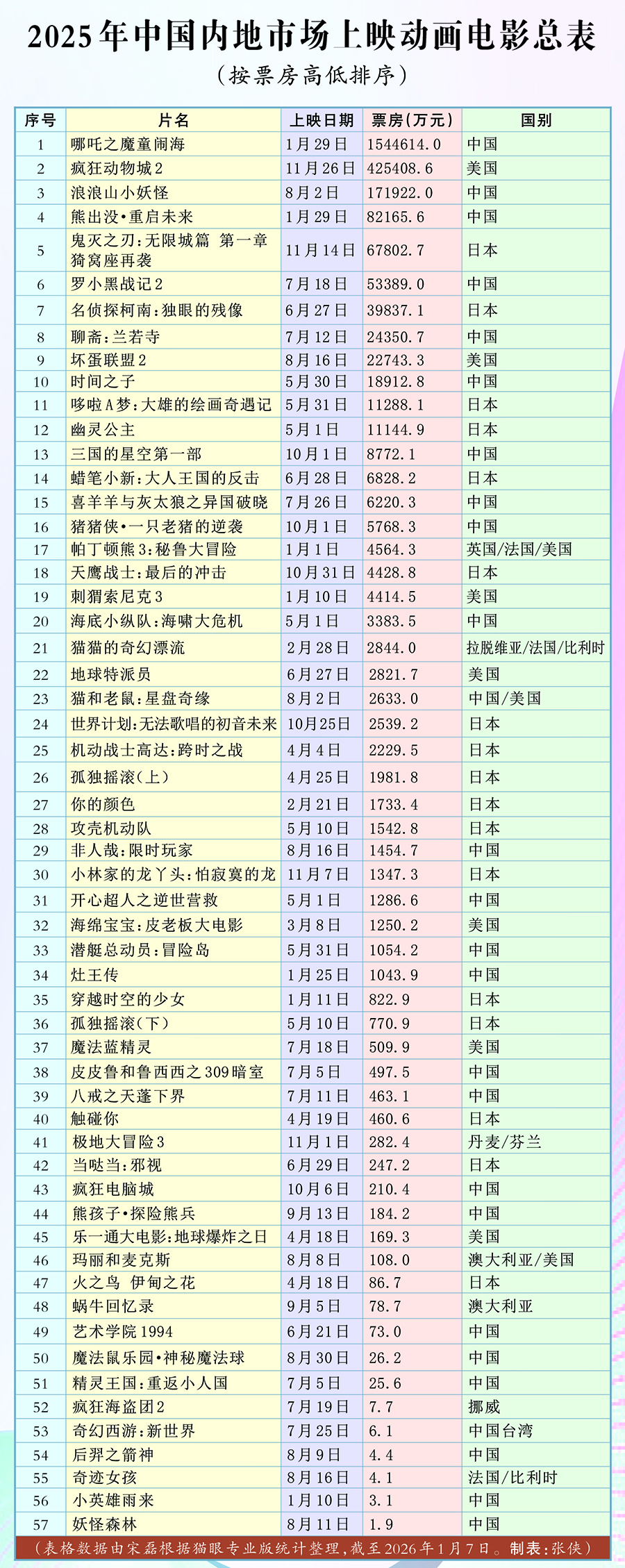 如果说动画电影的市场表现可分为大年小年,是有节奏心跳律动的话,那么,2025年奏响的无疑是“史上最强音”。
