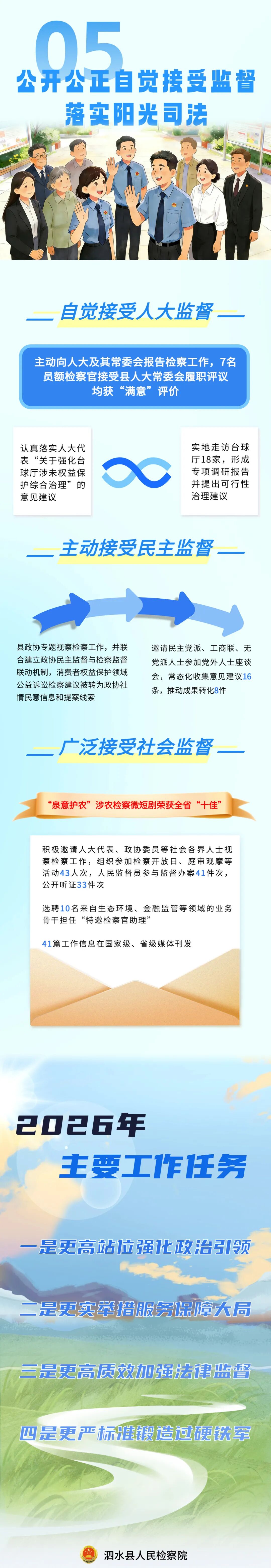1月13日上午,在泗水县第十九届人民代表大会第五次会议上,泗水县人民检察院党组书记、检察长刘娟向大会作工作报告。2025年泗水检察取得了哪些成绩?2026年检察工作又将如何谋划?带您一图速览(济宁检察)