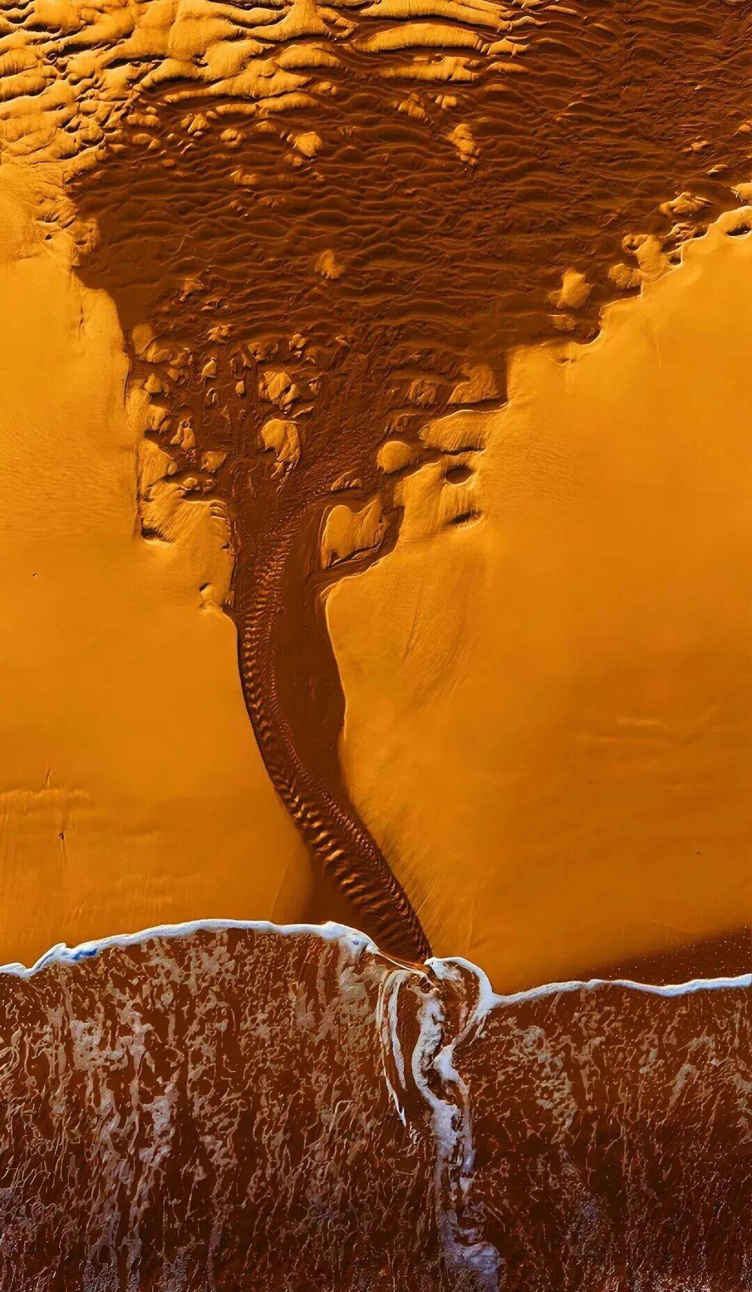 “潮汐树”实质是潮滩上发育的潮沟水系。潮滩是海洋与陆地之间物质交换的中间地带,潮滩上受到水动力条件、泥沙性质、生态环境的共同影响,发育成树枝状、羽状等多种形态的潮沟系统,也就是潮汐水道,因其形态类似于大树,又被称为“潮汐树”。