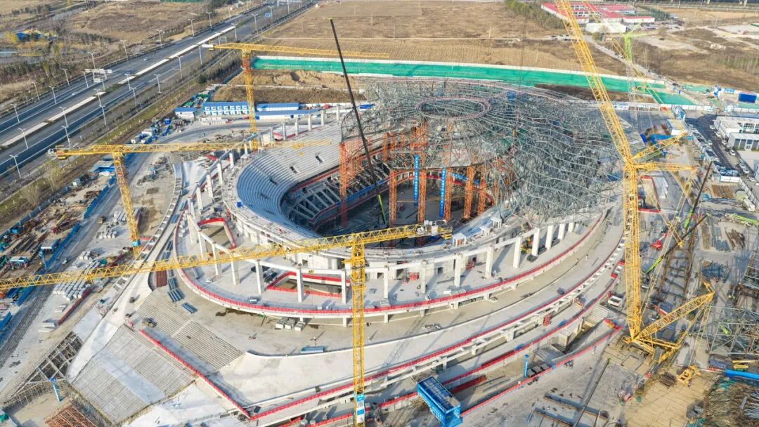 济南黄河体育中心体育馆钢结构屋盖已现雏形,文体新地标加速呈现