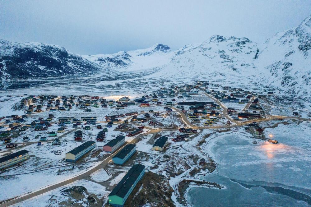 这是2025年3月21日拍摄的丹麦自治领地格陵兰岛纳尔萨克镇(无人机照片)。新华社记者彭子洋摄