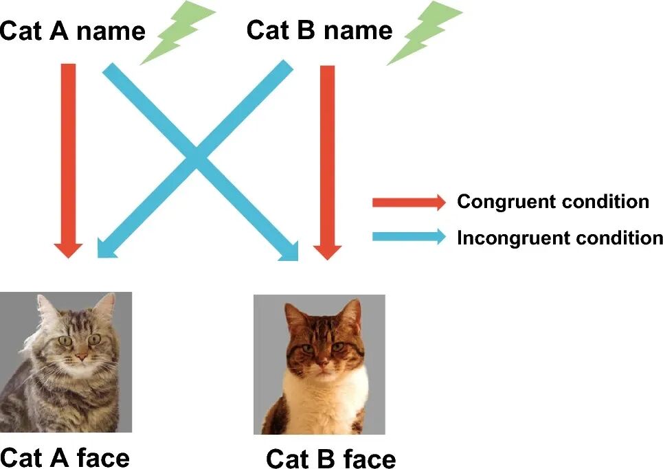 2019 年,日本研究者斋藤慈子和她的同事发现,猫听到自己的名字时都会作出反应,不管声音是来自是铲屎官还是陌生人。不过,听到铲屎官的呼唤时,猫的反应更明显,这可能是因为猫已经把自己的猫名和奖励(例如食物和抚摸)联系起来。