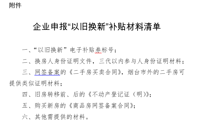 附件:企业申报“以旧换新”补贴材料清单
