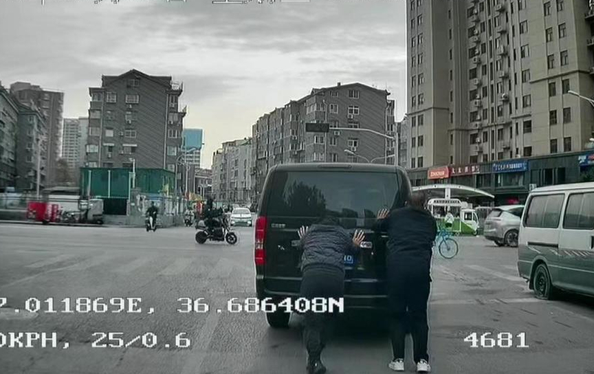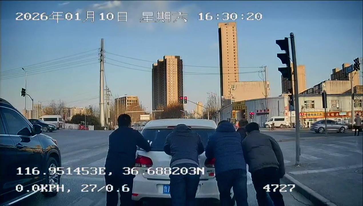 私家车抛锚车主不知所措,一群济南热心“老师儿”围了上来