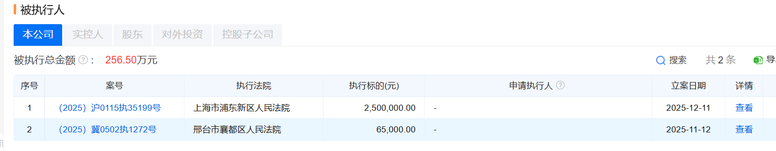 日前,据企业预警通提供的信息显示,邢台市信都区中心医院近期两次被法院列入被执行人,被执行总金额256.50 万元。企查查显示,该公司还存在两条历史被执行人信息,被执行总金额226.89 万元。