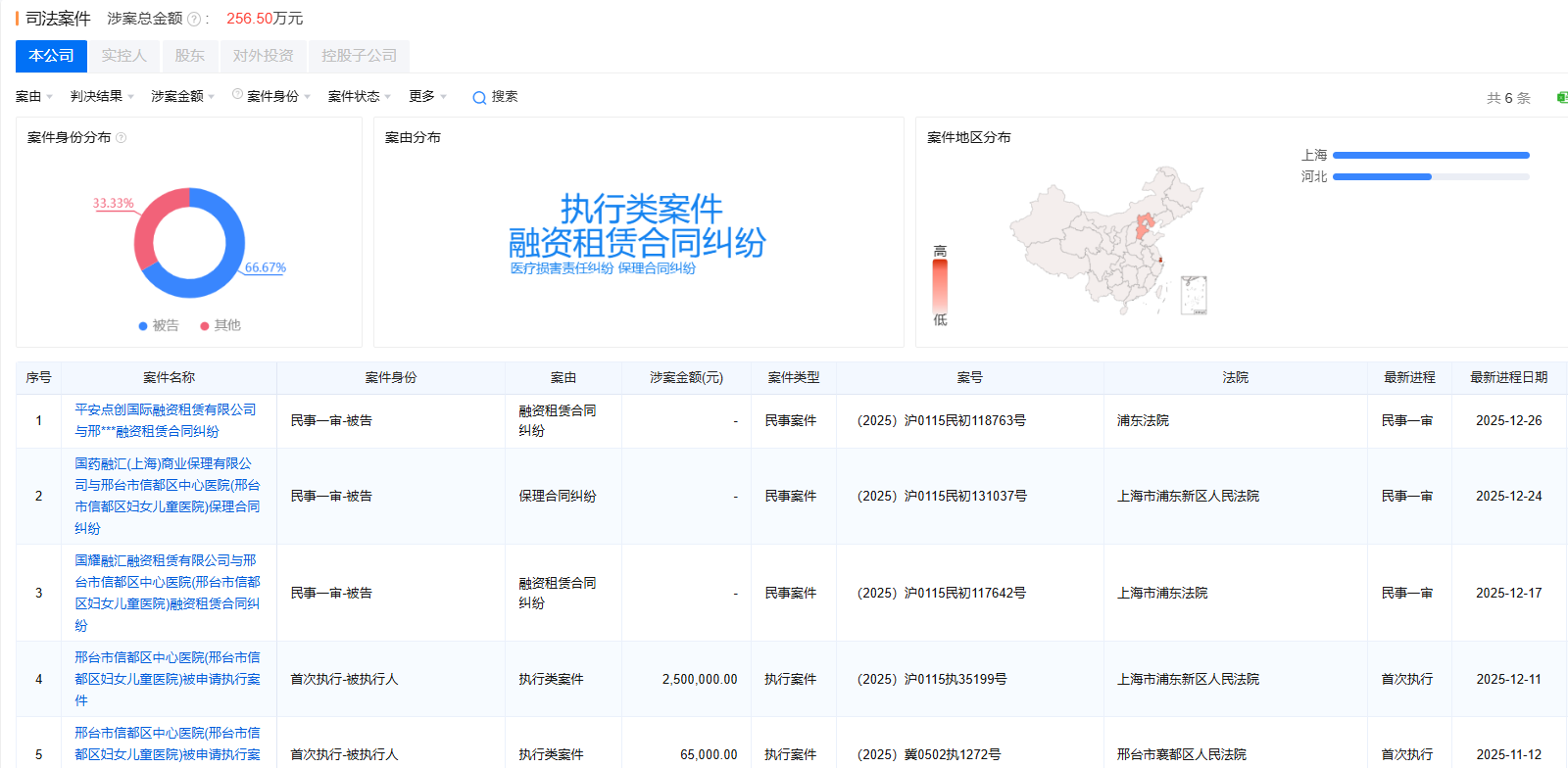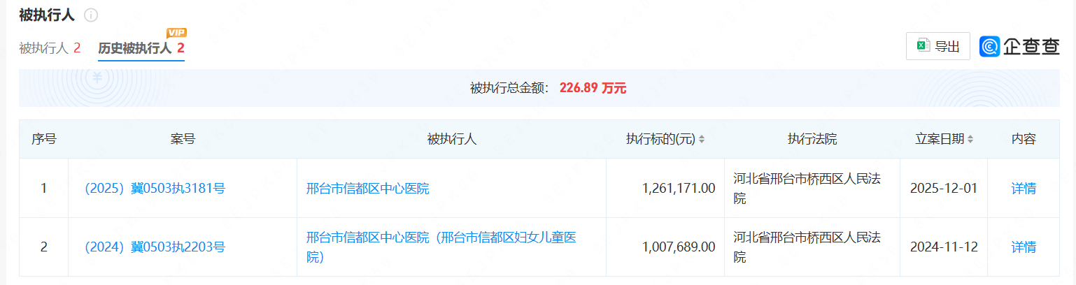 邢台市信都区中心医院近期两次成被执行人,近年卷入多起司法案件