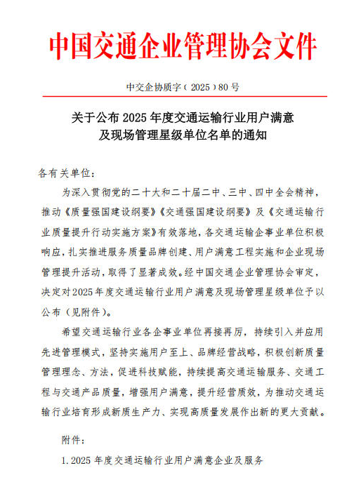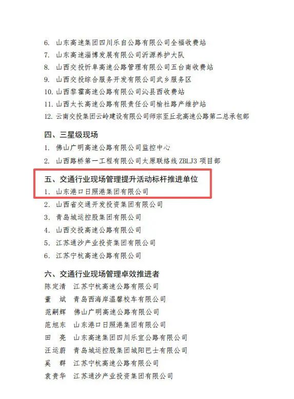 日前,中国交通企业管理协会公布了2025年度交通运输行业用户满意及现场管理星级单位名单的通知,山东港口日照港荣获交通行业现场管理提升活动标杆推进单位。