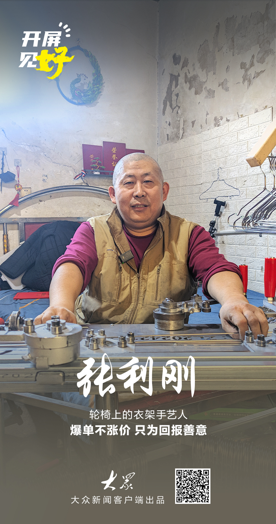 2025年4月,一次偶然机会,张利刚在网上刷到了不锈钢衣架制作视频。与以往制作的钥匙扣、自行车相比,衣架更加实用,也更容易销售。有了想法后,张利刚立刻行动起来,他贷款2400元购入设备,把小屋变成“工作室”,开始自学制作,每天几单的生意虽然小,但日子渐渐有了盼头。