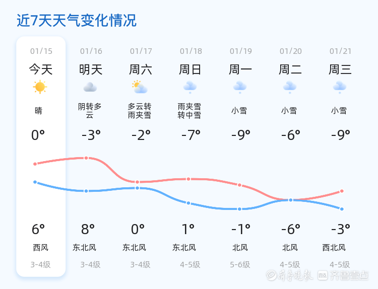 未来三天,威海市天气变化较大。周六多云转雨夹雪,气温在-2℃到0℃之间;周日雨夹雪转中雪,气温进一步下降至-7℃到1℃,东北风4-5级;周一将迎来小雪天气,气温低至-9℃到-1℃,北风5-6级。市民需做好防寒准备,注意防范雨雪天气对出行的影响。