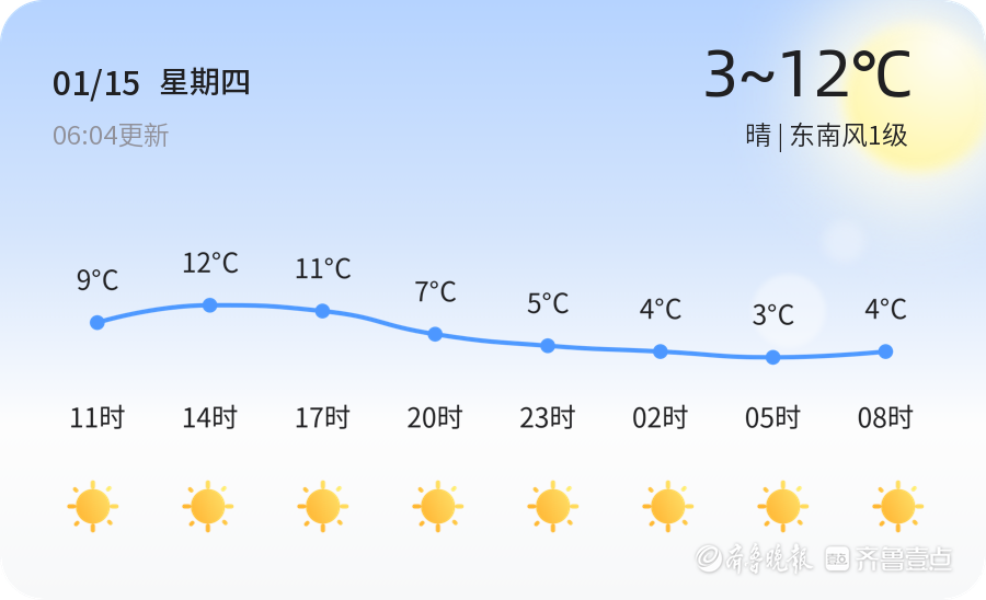 今天是2026年1月15日,农历十一月廿七,星期四。泰安市天气晴朗,当前气温-2.2℃,东南风1级,空气湿度93%。空气质量指数为210,属于中度污染,建议敏感人群减少外出,注意防护。今日气温预计最高12℃,最低3℃,市民出行时需根据气温变化适时增减衣物,同时由于早晨可能出现大雾天气,驾车请注意减速慢行,确保行车安全。未来三天,泰安市天气将出现明显变化。明天1月16日,天气多云,气温将有所下降,最高气温12℃,最低气温-3℃,风力3-4级。1月17日,天气转阴并伴有雨夹雪,气温进一步下降,最高气温5℃,最低气温-1℃,风力较大,建议市民出行携带雨具并注意防滑。1月18日,天气转为雨夹雪转小雪,气温最低可达-5℃,风力4-5级,提醒市民做好防寒保暖措施。温馨提示