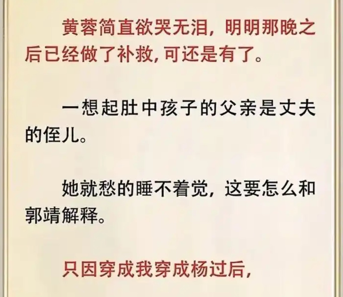 报道显示,该广告借用了金庸经典作品中的角色“黄蓉”与“杨过”,并在情节描述中出现“一想起肚中孩子的父亲是丈夫的侄儿”等明显含有低俗暗示、打擦边球的文案,涉嫌利用知名文学角色进行软色情营销,引发用户强烈反感。