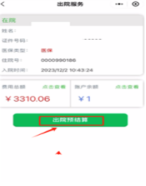 出院预结算信息确认无误后,先点击补交按钮,进行补交金额缴费;补交完成后,点击出院结算按钮,完成出院结算。