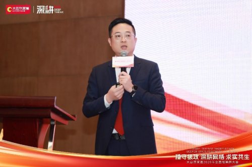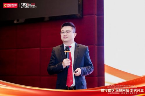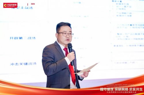 直面行业转型关键期,大自然家居集团董事会主席、集团总裁(CEO)佘学彬在经销商年会上发表坚定有力的主题演讲。他明确指出,必须发扬“二次创业”的奋斗者精神,与经销商伙伴真正构建命运共同体。以此为基石,公司将以 “稳守狠攻、深耕网格、求实共生”为核心行动纲领,穿越行业淘汰周期,全力打赢三大战役,共筑生存之路。