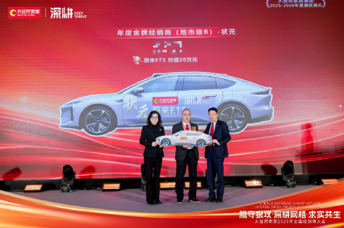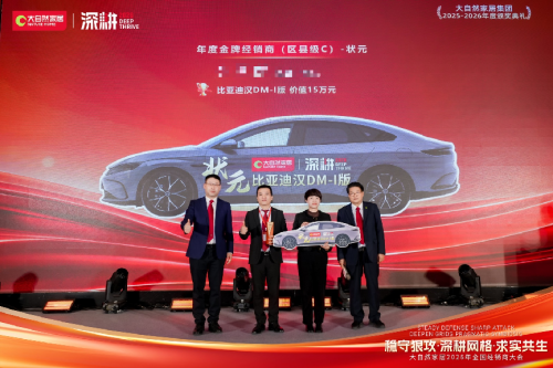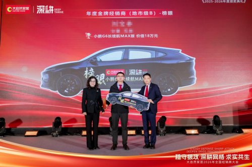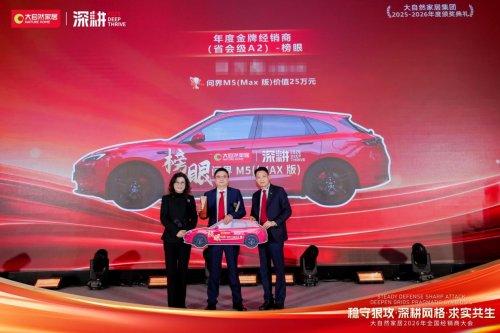 大会对过去一年逆势增长、表现卓越的标杆经销商予以隆重表彰。其中,大自然家居集团董事会主席、集团总裁(CEO)佘学彬、集团董事会副主席袁顺意,携手仰望汽车总经理 胡晓庆,共同为“年度金牌经销商”颁发仰望U8L,以榜样力量激发全域“向赢而战”的奋斗激情。