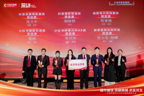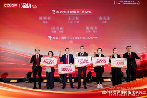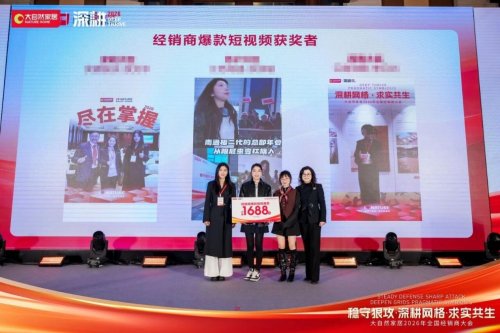 值得一提的是,为激活品牌传播新势能、释放内容创作活力,本次大会特别设置“经销商爆款短视频征集活动”。会上,大自然家居集团副董事长 袁顺意为活动中的优秀创作者颁奖。
