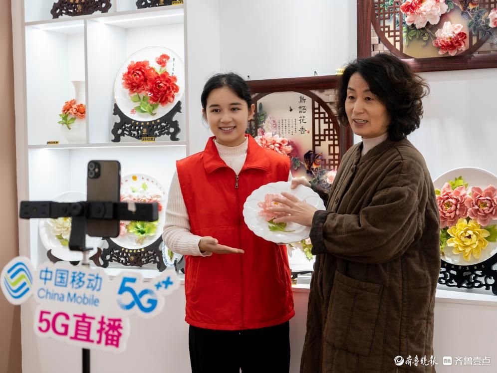 采访过程中,记者注意到工作室的直播架上正架着5G超高清摄像头,菏泽移动的工作人员正在调试。“以前牡丹瓷作品主要靠线下非遗博览会、旅游景区门店销售,知道的人多是中老年爱好者,年轻人很少接触。” 菏泽移动产品客户经理洪晓晴介绍道,“现在我们不仅搭建了5G超高清直播间,还帮传承人打造了短视频账号,网友能实时看到一块瓷土从揉泥、塑形、绘稿、施釉到入窑烧制的完整过程,高清镜头下连花瓣的纹路、釉色的渐变都看得一清二楚,吸引了不少00后通过私信联系,想跟着刘老师学手艺。”