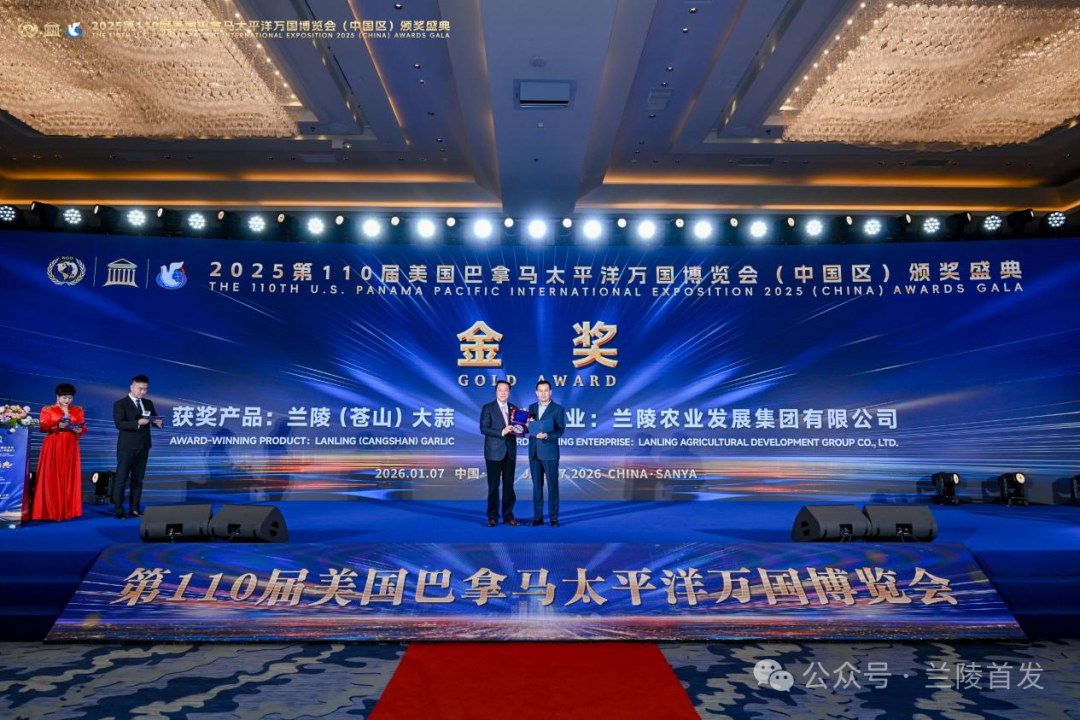 巴拿马太平洋万国博览会创立于1915年,是全球具有百年历史的产品展示与交流平台。本届博览会携手世界华商论坛,依托海南自贸港开放优势,汇聚全球品牌同台竞技。“兰陵(苍山)大蒜”凭借优良品质、鲜明特色与文化内涵,通过多维评审,最终脱颖而出,斩获金奖。