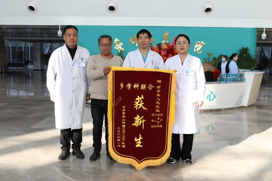 1月13日,金乡县人民医院门诊大厅内暖意浓浓,一名患者家属将写有“多学科联合获新生”的锦旗郑重送到产科、泌尿外科、介入科、感染性疾病科医护人员手中,深表感谢。这面锦旗虽轻,却承载着一段关乎母婴平安、跨越科室与医院的生命接力故事。