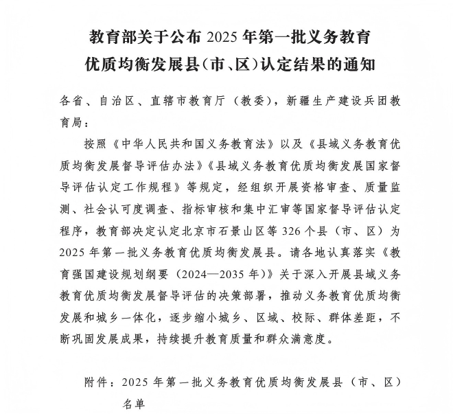2025年第一批义务教育优质均衡