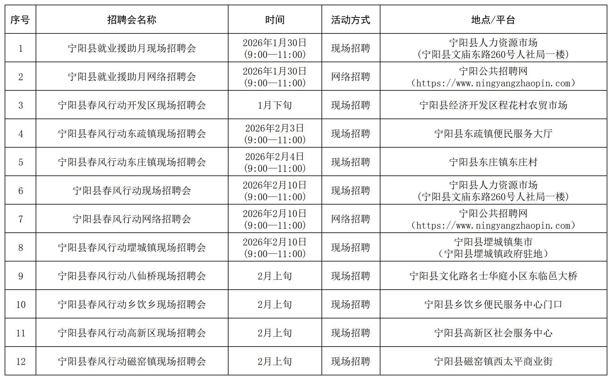 温馨提示:本公告内容为计划安排,请以各区域具体活动公告等信息为准,建议用人单位和求职者提前电话咨询或者留意网络公告。