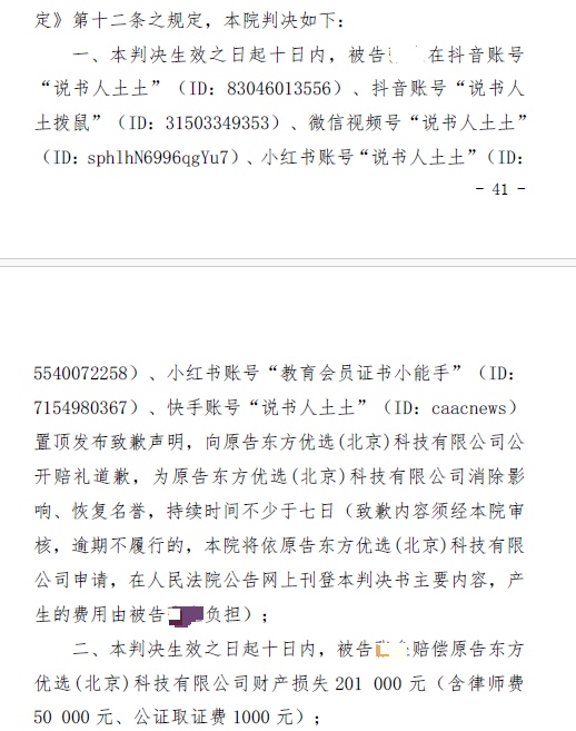 壹点企讯|“说书人土土”因侵权东方甄选被判赔20万元