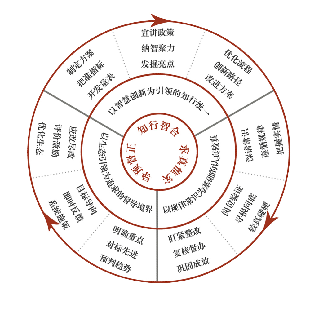 着重发挥淄博教育督导文化的基础作用。将践行“淄博教育督导文化工作图谱”与整改提升相互嵌入、深度融合,组建由国家督学、齐鲁名校长等组成的专家团队,对130所中小学开展“沉浸式”指导全覆盖,并以“四不两直”方式抽查整改成效。各区县指导组及328名责任督学,利用观摩交流、创建专报、工作通报等形式,指导学校将问题整改融入常态管理,力求“改一次管长远”,有效实现以整改促提升、以创建促发展。