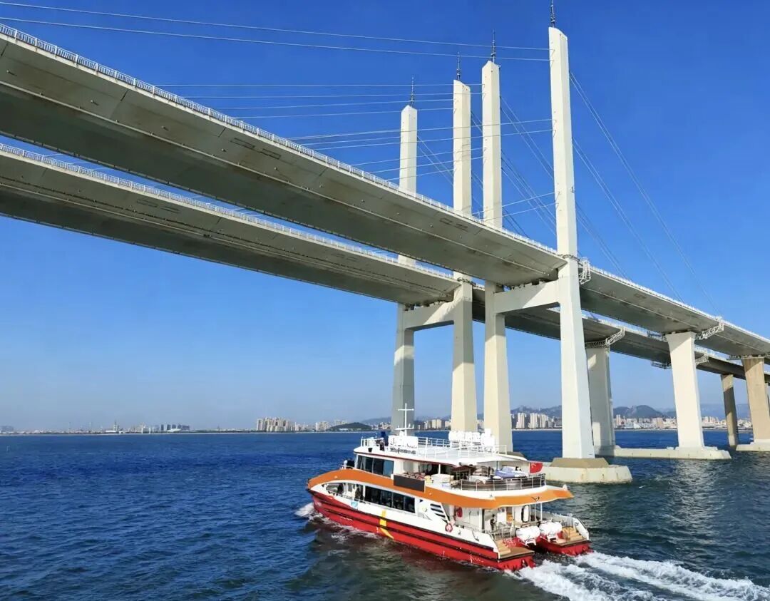胶州湾北岸,碧波与宏伟桥体的交错间,“海上穿越大桥”系列航线的开通亦是关键的战略落子,不仅填补了胶州湾北岸海上旅游的空白,更以桥海互动的独特视角,打造了全国少有的穿越式观景体验。自2025年10月底至当年末,已累计发船767班次、接待游客6.7万人次,实现营收355万元,成为一条快速崛起的“海上网红线路”。