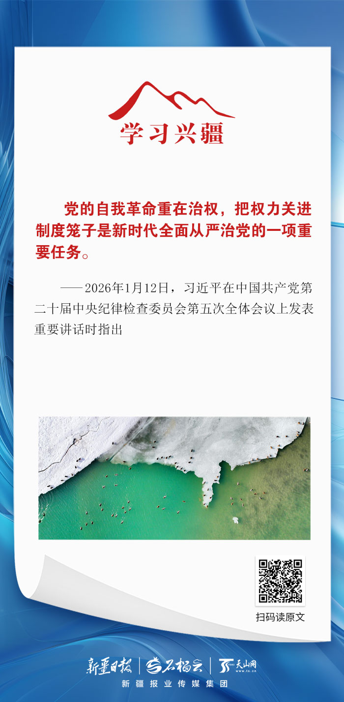 学习兴疆丨党的自我革命重在治权天山网 2026-01-15 15:00:51党的自我革命重在治权,把权力关进制度笼子是新时代全面从严治党的一项重要任务。——2026年1月12日,习近平在中国共产党第二十届中央纪律检查委员会第五次全体会议上发表重要讲话时指出责任编辑:帕提姑丽·牙森