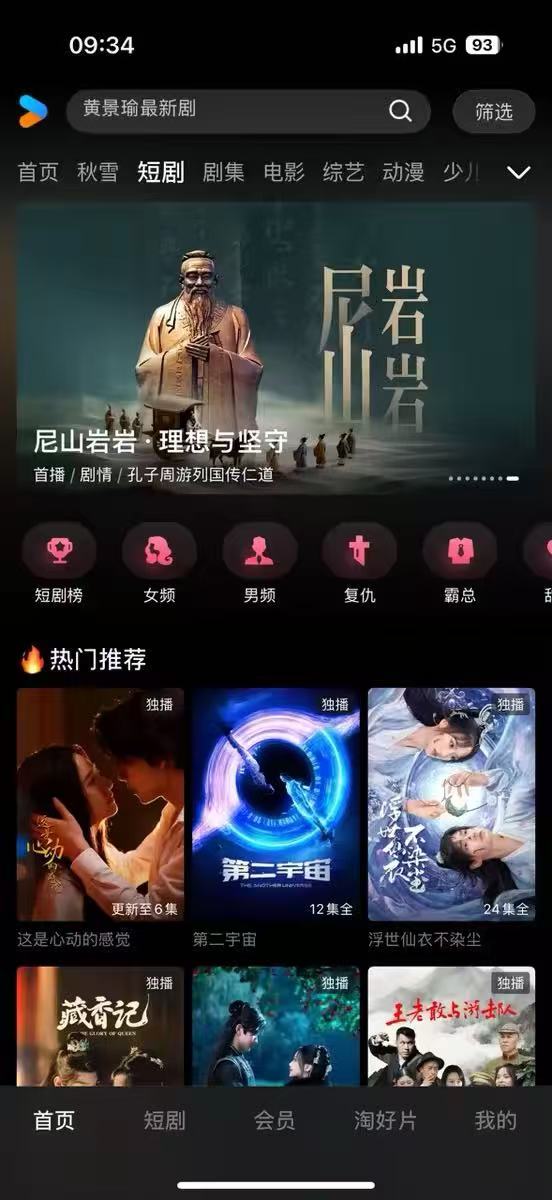 优酷首页首屏首发上线,山东数字文化集团AI微短剧《尼山岩岩》开播