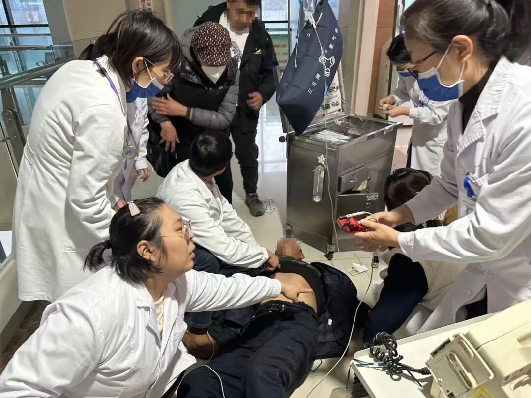 正在接诊的心内科副主任医师刘茂月闻声冲出诊室,第一个赶到患者身旁。经快速判断,患者已呼吸心跳骤停。没有丝毫犹豫,刘茂月立即跪地进行胸外心脏按压。时间就是生命,每一秒都关乎生死。