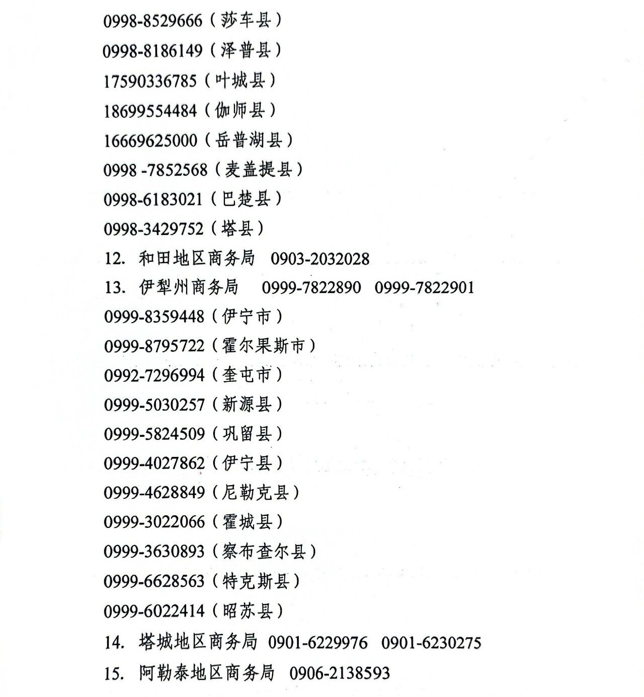 附件:新疆维吾尔自治区消费品以旧换新政策咨询电话