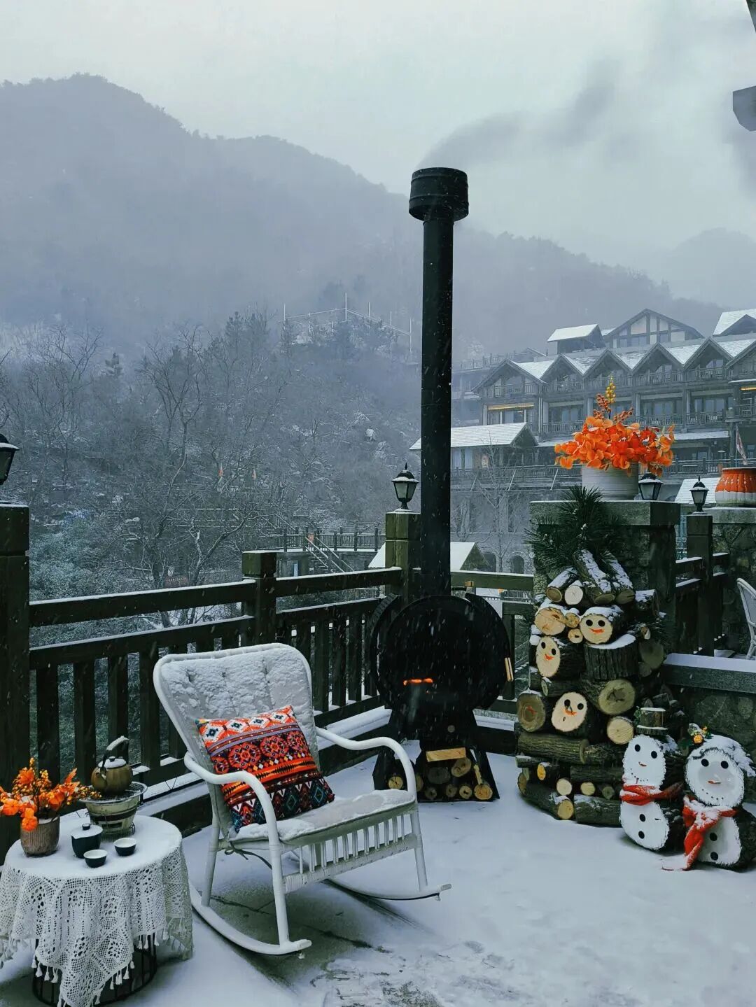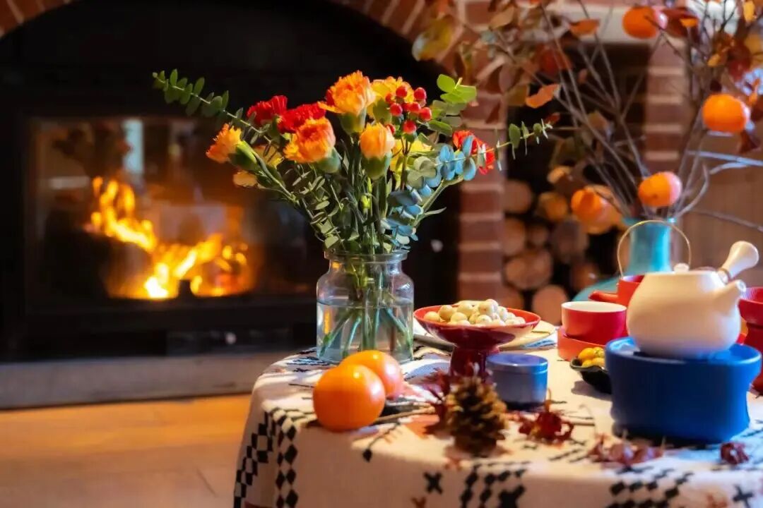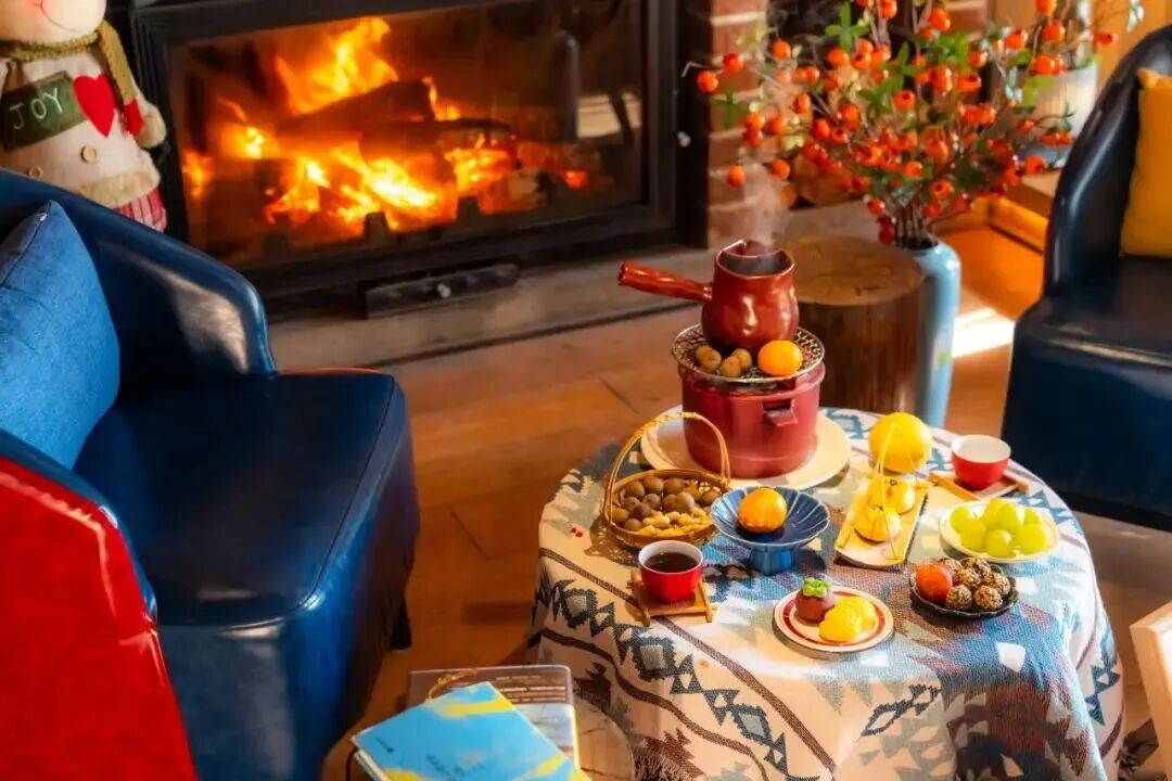 冷风吹过松林簌簌作响,小木屋内却炭火正旺。陶壶中的热茶蒸腾着暖香,烤栗子的甜意漫出窗外。与朋友围坐炉边,手捧热饮眺望山间松涛,指尖的暖意足以抵挡所有严寒。