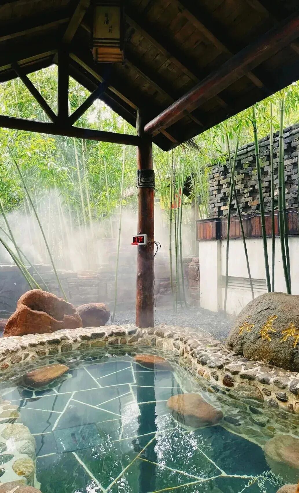 此处正是唐代“乾封汤”所在地,历经千年,温暖如初。泡在松香弥漫的汤池中,遥望千年银杏,聆听牟汶河隐约水声,自然与历史在此静静交融。