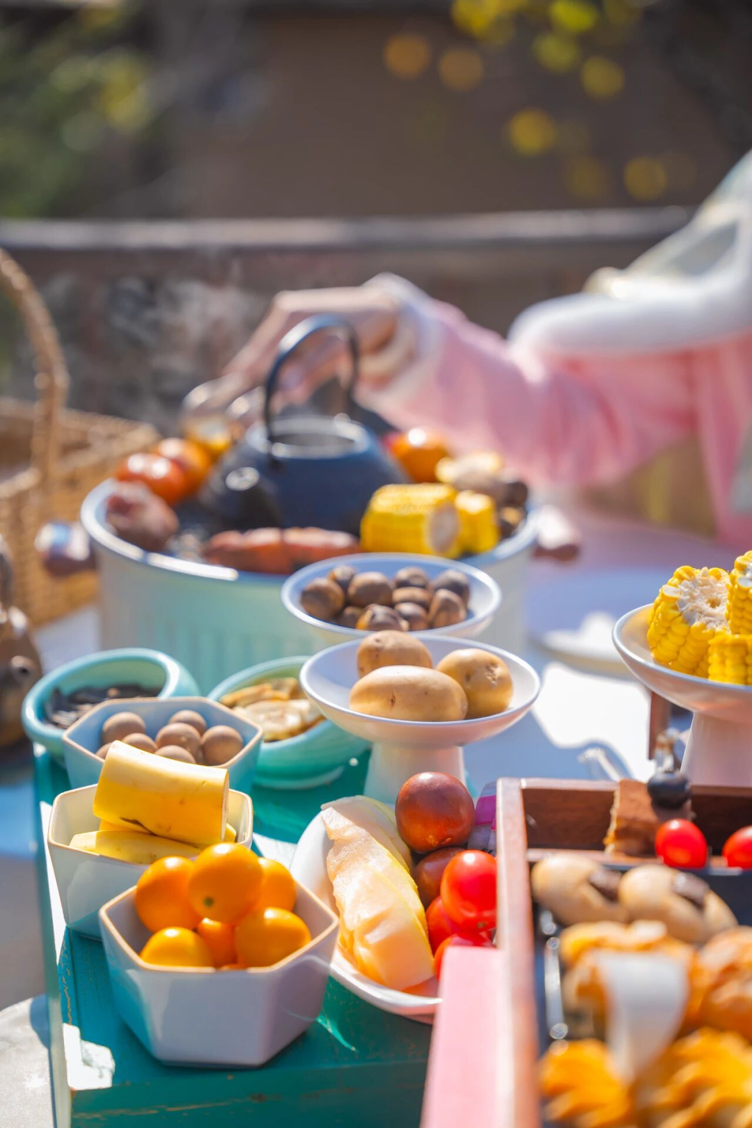 在尼山书院酒店的庭院中,红泥小火炉升起暖意,茶壶咕嘟作响,热气袅袅。与家人好友围坐炉旁,闲谈漫话,看橘子、红薯、年糕在炭火边烘烤得金黄柔软,甜香在空气中缓缓弥漫。