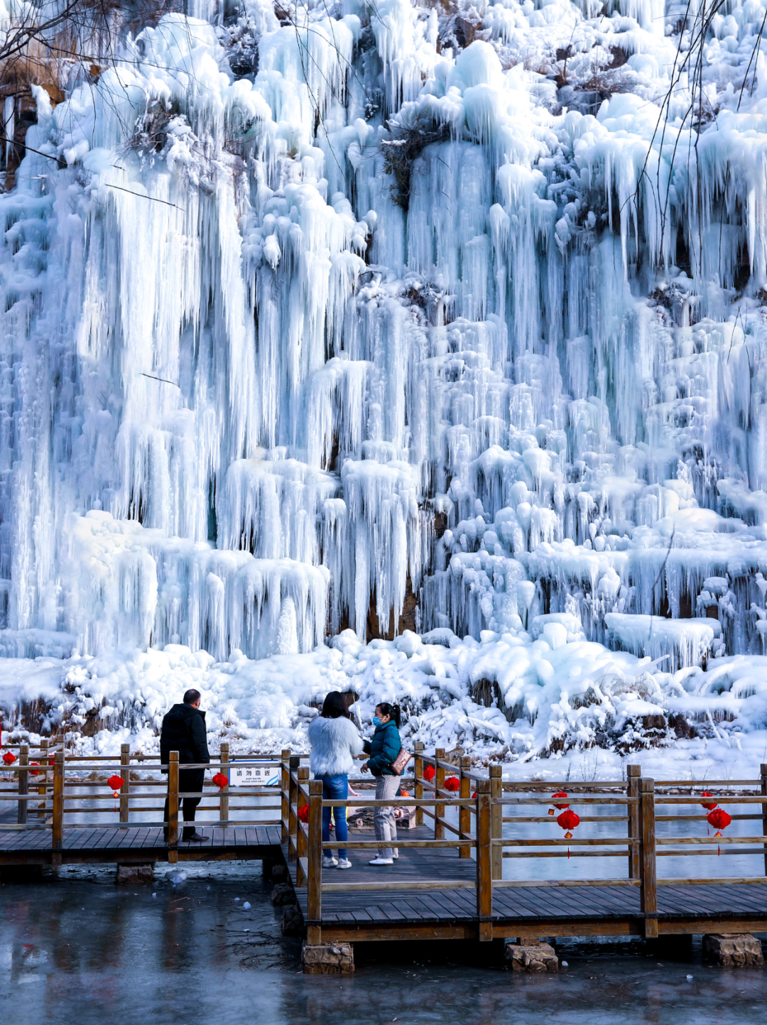 这里还有三十余米高、百余米宽的迎宾瀑布凝成的“琉璃”世界,冰挂垂落似银河倾泻。蓝天旷野间,满溢着北方山野独有的壮美。