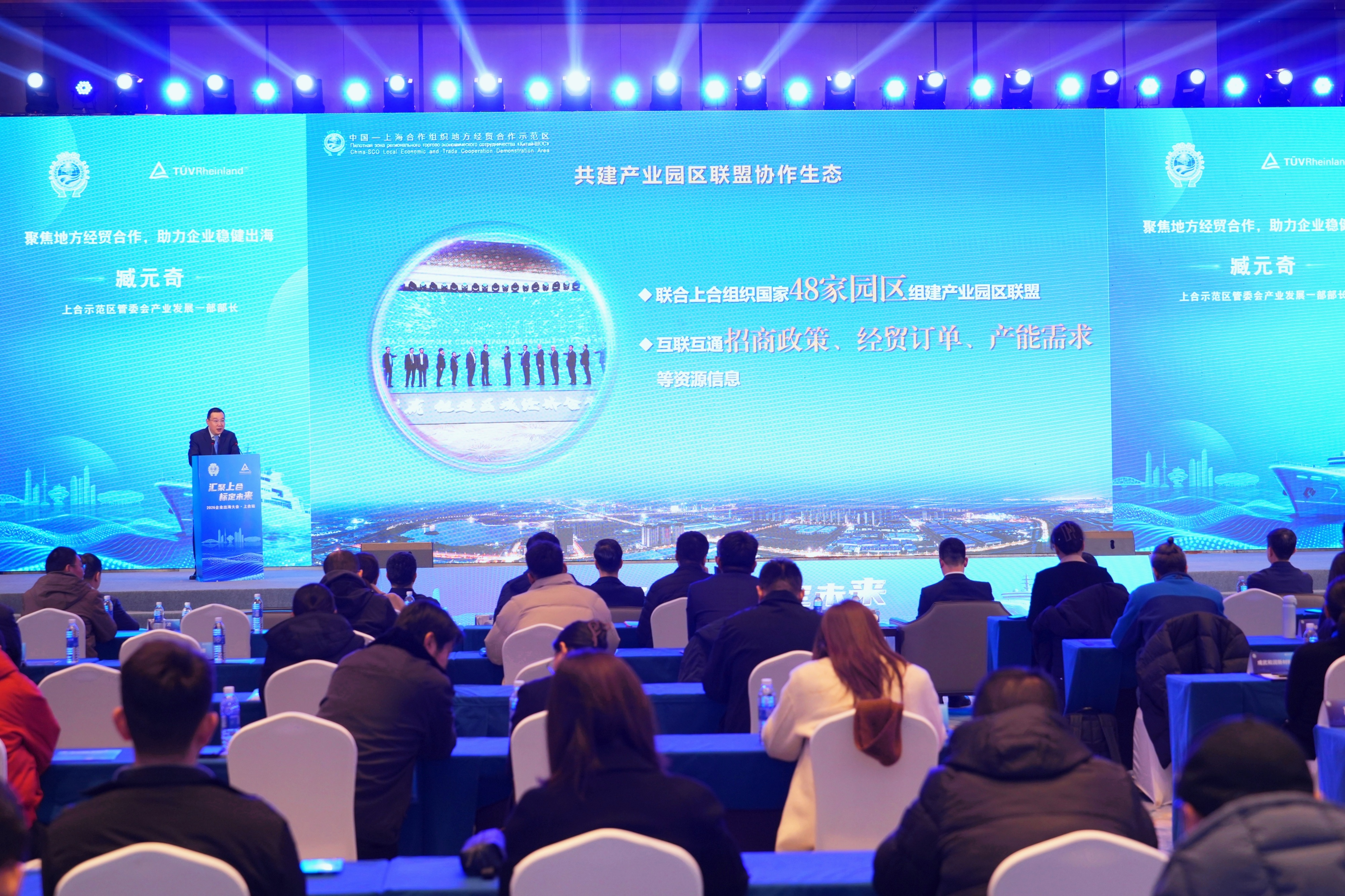 1月15日,“2026企业出海大会·上合站”活动在上合示范区举办。本次大会以“汇聚上合,标定未来”为主题,由上合示范区管委会与德国莱茵TÜV大中华区(简称“TÜV莱茵”)共同主办,旨在依托上合示范区国家级开放合作平台优势,聚焦智能家电、机械制造、电子信息三大重点领域,深度解码全球化布局挑战与合规管理路径,共同探讨中国企业在上合组织框架下出海发展的新机遇新实践,行业专家、产业链领军企业代表等150余人参加会议。