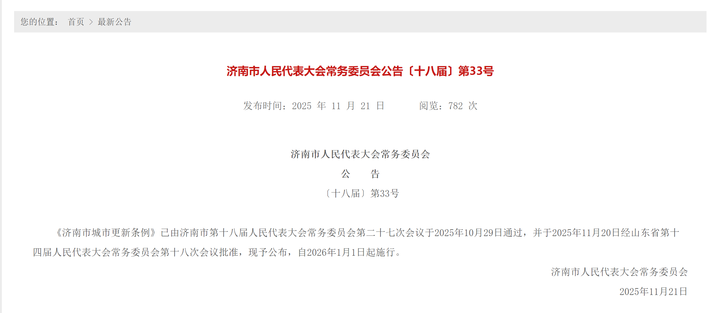 1月15日,山东住房城乡建设工作会议在济南召开。会上,济南市住房和城乡建设局党组书记、局长亓伟在发言交流环节介绍,2025年,济南以城市更新为提升城市能级、增进民生福祉的关键抓手。聚焦制度构建、项目推进、资金保障三大核心领域精准发力,推动泉城城市更新工作取得丰硕成果。2025年,济南成功入选2025年度中央财政支持实施城市更新行动城市、国家开发银行城市更新贷款试点范围,舜泰广场智慧停车等2个项目跻身全国典型,上新街片区等3个项目入选省级创新案例,为强省会高质量发展注入强劲动能。