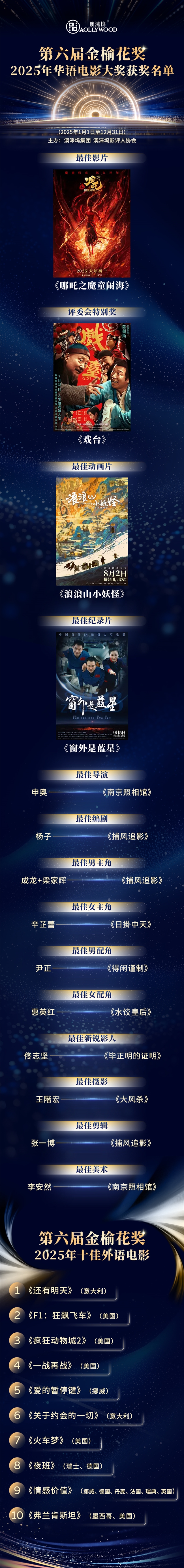 这种多元包容,在配角奖项的评选中体现得尤为明显。尹正凭借《得闲谨制》中日本鬼子大河原的突破性表演,打破了观众对他的固有印象;惠英红以《水饺皇后》里充满市井烟火气的红姐,再度证明了自己的表演实力。这些配角演员的获奖,不仅丰富了奖项的内涵,更彰显了金榆花奖“角色不分大小,演技才是王道”的评选理念。此外,十佳外语片的评选,既囊括了《疯狂动物城2》这样的合家欢动画,也收录了《还有明天》这样的文艺片精品,展现出奖项开阔的全球视野。