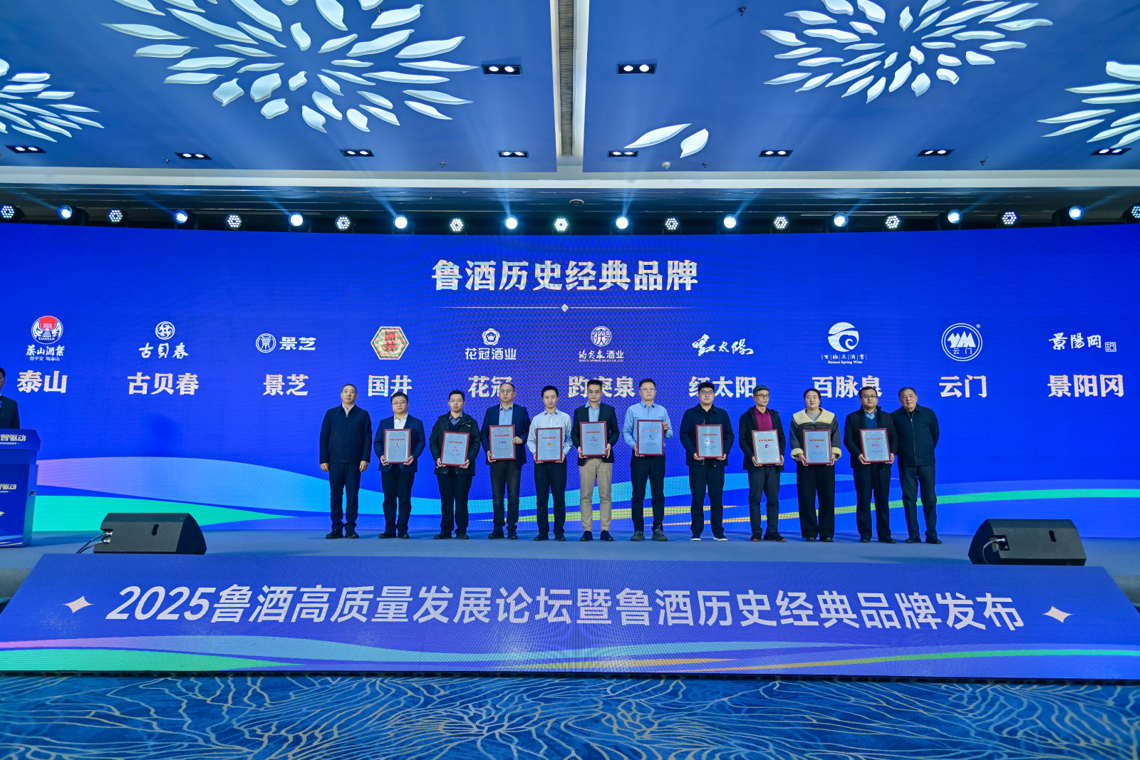 由中国酒业协会、山东数字文化集团指导,齐鲁晚报·齐鲁壹点、山东省白酒协会主办,鲁酒领军企业协办的“2025鲁酒高质量发展论坛暨鲁酒经典传承品牌发布”于2026年1月15日在济南举办。历史经典,是鲁酒最深厚的底气,也是鲁酒走向未来的根基,泰山、古贝春、景芝、国井、花冠、趵突泉、红太阳、百脉泉、云门、景阳冈荣膺“鲁酒历史经典品牌”,颁奖词如下。