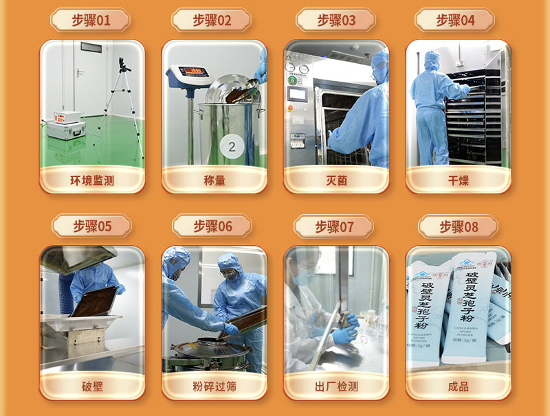 标准化生产与先进破壁工艺:从种源采集到GMP车间生产,从灵芝孢子粉原料到成品,喜蕈生物实施全链条质量监控,从环境检测、称量、灭菌、干燥、破壁、粉碎过筛、出厂检测,每一道工序都经过严格把控,确保产品从生产到消费者手中每一步都符合最高标准,全力守护消费者健康。其中破壁环节采用的是低温物理破壁技术,破壁率≥99%,使得灵芝孢子中的有效成分得以充分释放,且无任何化学残留。