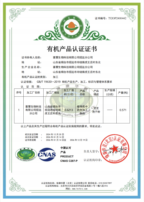 有机认证可以说明产品从菌种培育到生产的全过程,严格遵循有机标准,禁止使用农药、化肥等,确保产品无农残、重金属污染风险,从源头保障纯净与天然。