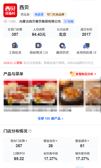 据西贝官网介绍,截至2025年3月,西贝拥近400家直营门店,遍布中国近60个城市,员工2万余人。