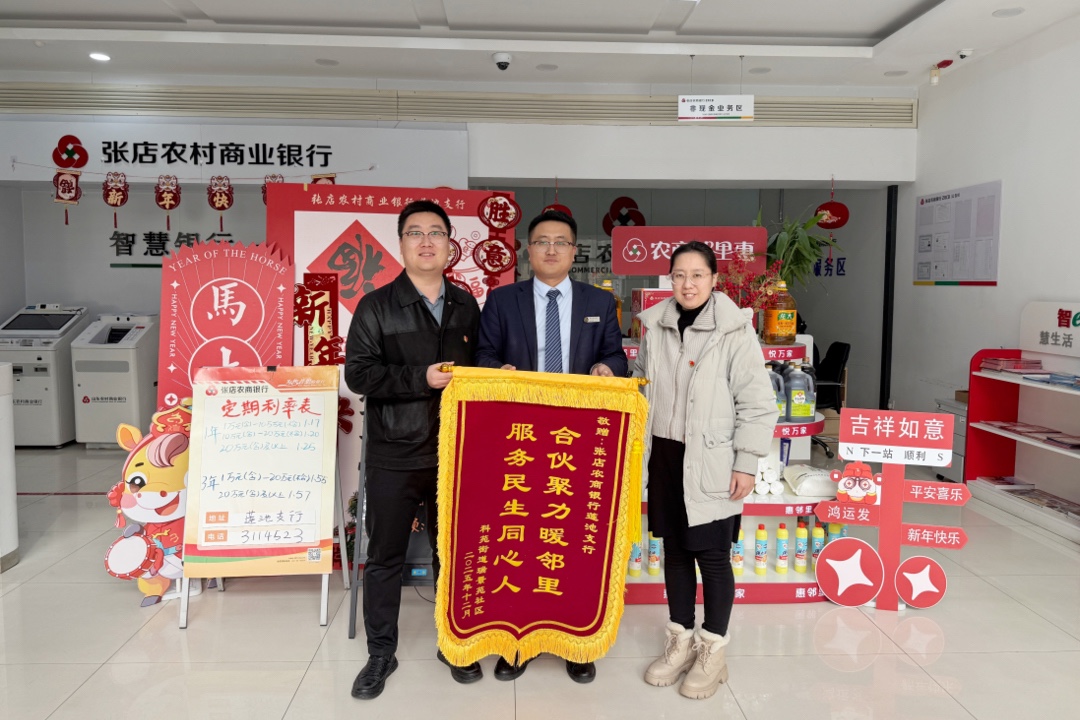 一面锦旗,不仅是一份肯定,更是一份责任和鞭策。下一步,张店农商银行将始终坚持“以客户为中心”的服务宗旨,紧扣客户多样化金融需求,持续延伸服务触角、提升服务质效,不断推出更具针对性和普惠性的金融产品与服务。用细心关注每一个服务环节,用耐心解决每一项客户诉求,用真心传递农商温度,以更加优质、高效、贴心的金融服务回馈社会各界的信任与支持。(司书军 刘琳)