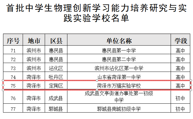 近日,山东省青少年科技教育协会与山东物理学会联合公布了首批“中学生物理创新学习能力培养研究与实践实验学校”名单,菏泽市万福实验学校凭借扎实的物理教学基础、鲜明的创新教育特色和显著的育人成果成功入选,成为全省首批获此殊荣的实验学校之一!这是对该校物理学科建设与创新人才培养工作的高度肯定,更是深化教育教学改革、推进高质量发展的重要里程碑。