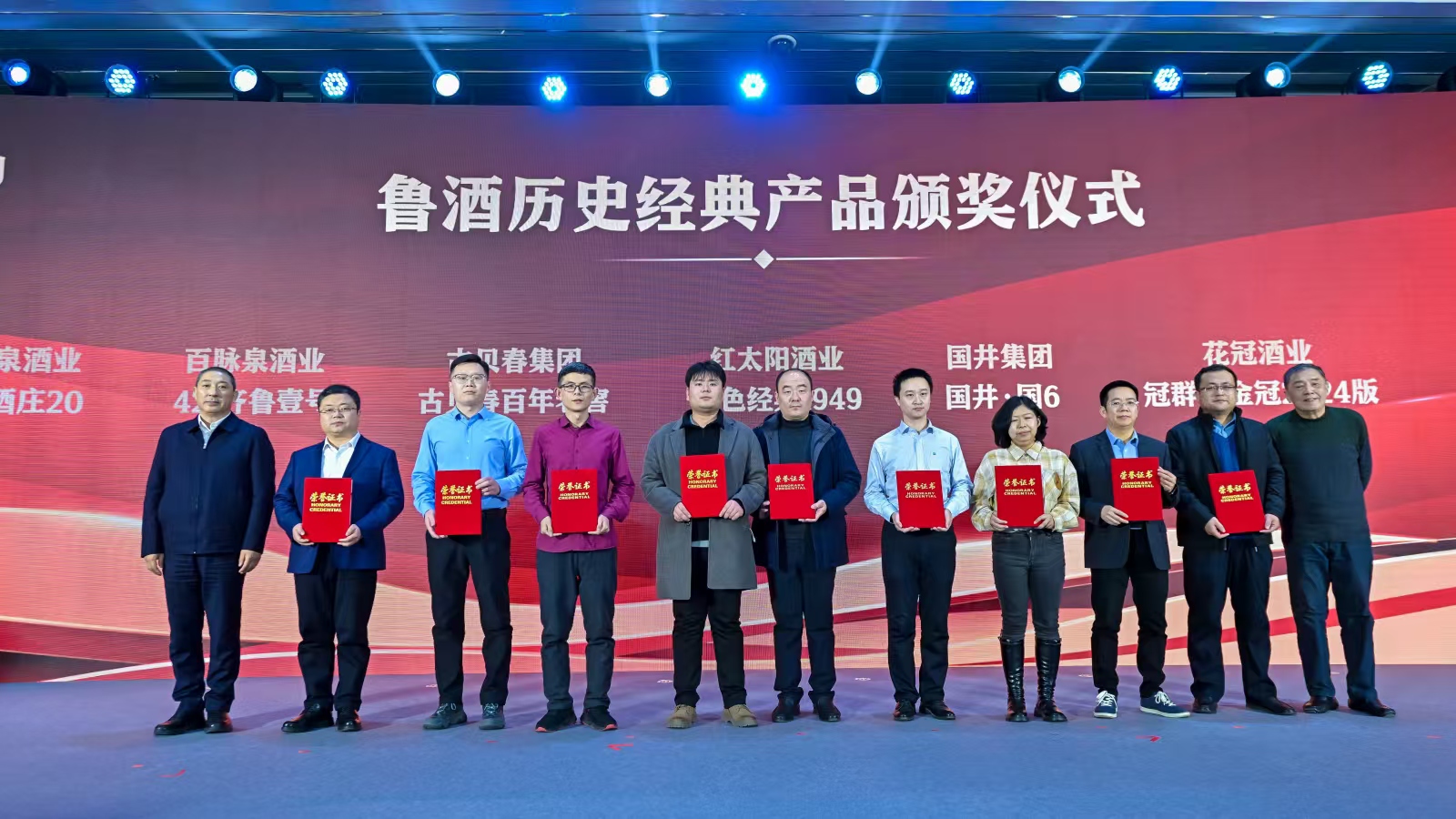 泰山酒业·五岳独尊-御尊、趵突泉酒业·泉香酒庄20、百脉泉酒业·42°齐鲁壹号、古贝春集团·古贝春百年老窖、红太阳酒业·红色经典1949、国井集团·国井-国6、花冠酒业·冠群芳金冠2024版、景芝白酒·景阳春 金标、景阳冈酒业·透瓶香在2025鲁酒高质量发展论坛上获评“历史经典鲁酒产品”荣誉。