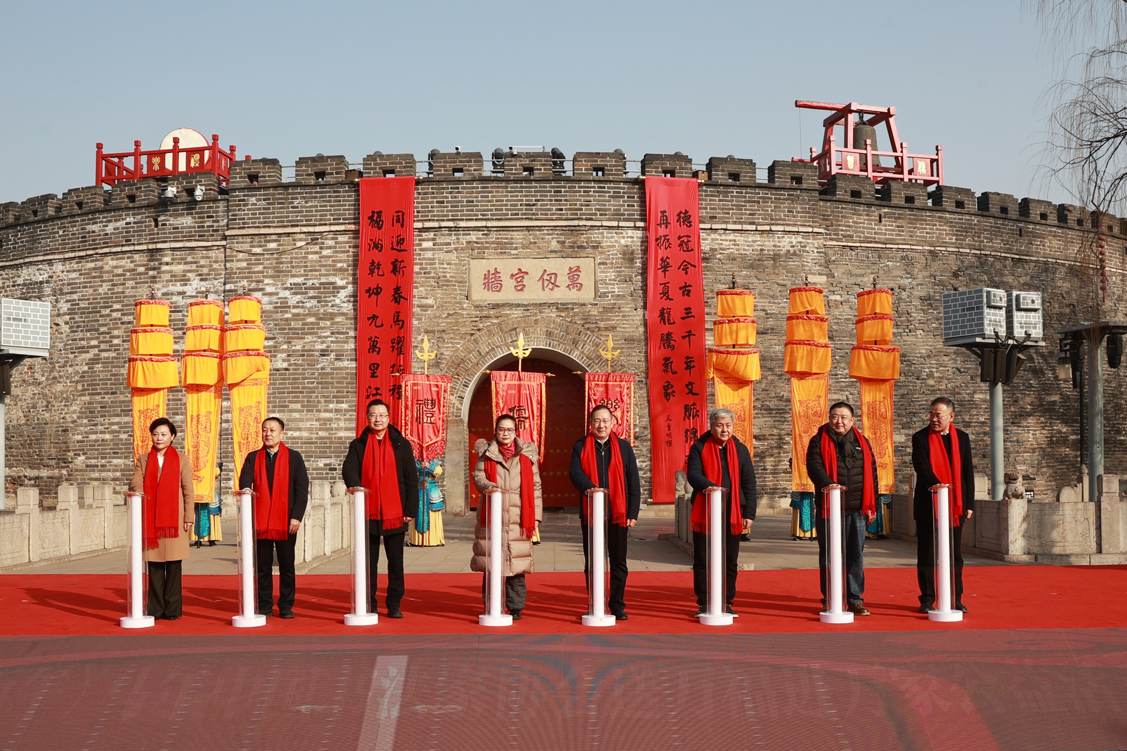 青砖巍峨,万仞宫墙,在冬日里焕发出别样生机。由马勇明先生撰拟、孙晓云先生书写的巨型红绸龙门对春联自墙顶垂落,“德冠今古三千年文脉绵延 再振华夏龙腾气象;福满乾坤九万里江山焕彩 同迎新春马跃征程”的墨色联语将马年新春的期许与中华文脉的厚重凝于字间,为活动拉开序幕。